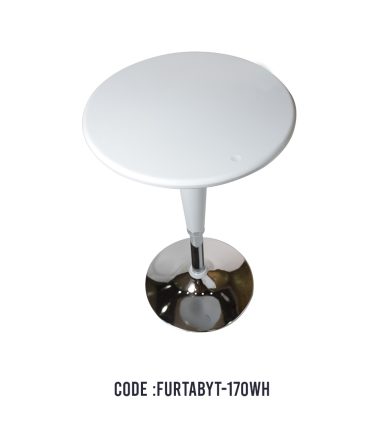 WHITE ABS PLASTIC ROUND TABLE WITH CHROME BASE