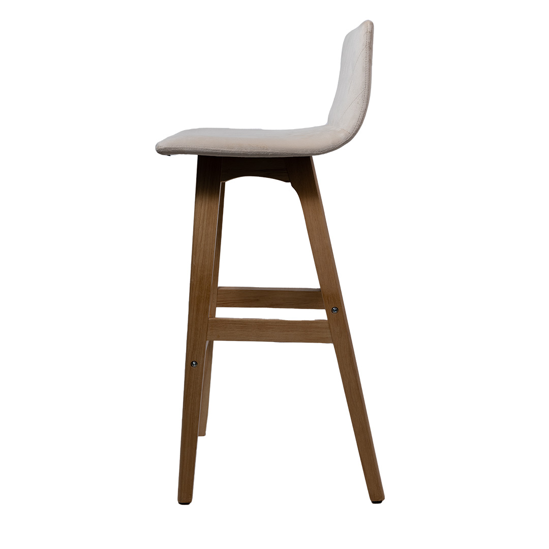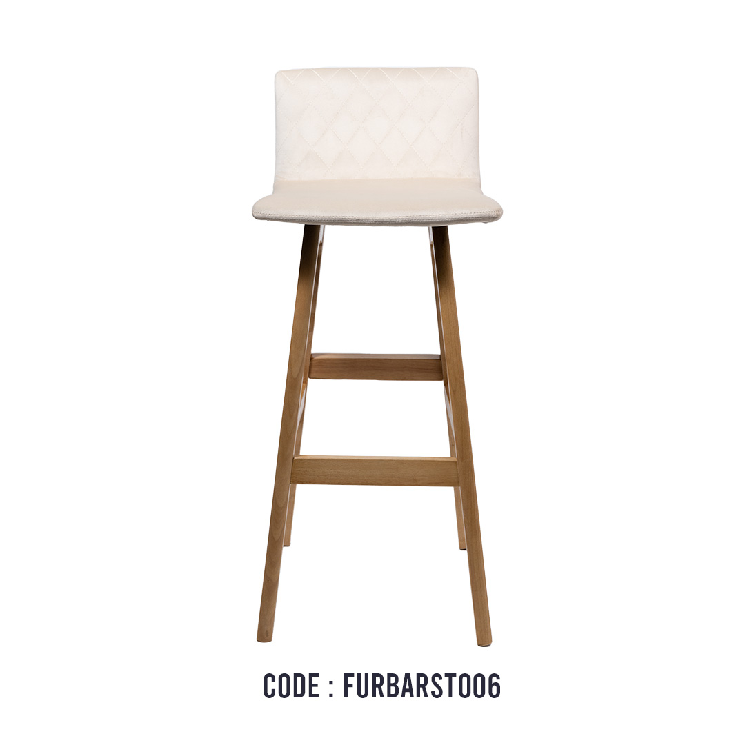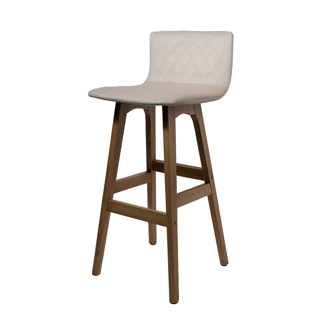 Features : velvet fabric seat and back, ” A” shape wood leg Usage : Bar stool Size: 750MM