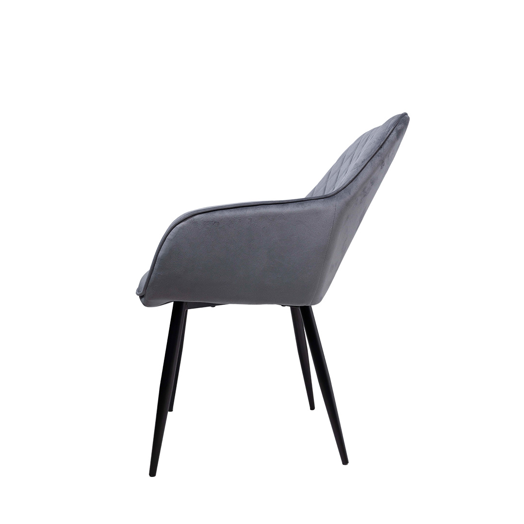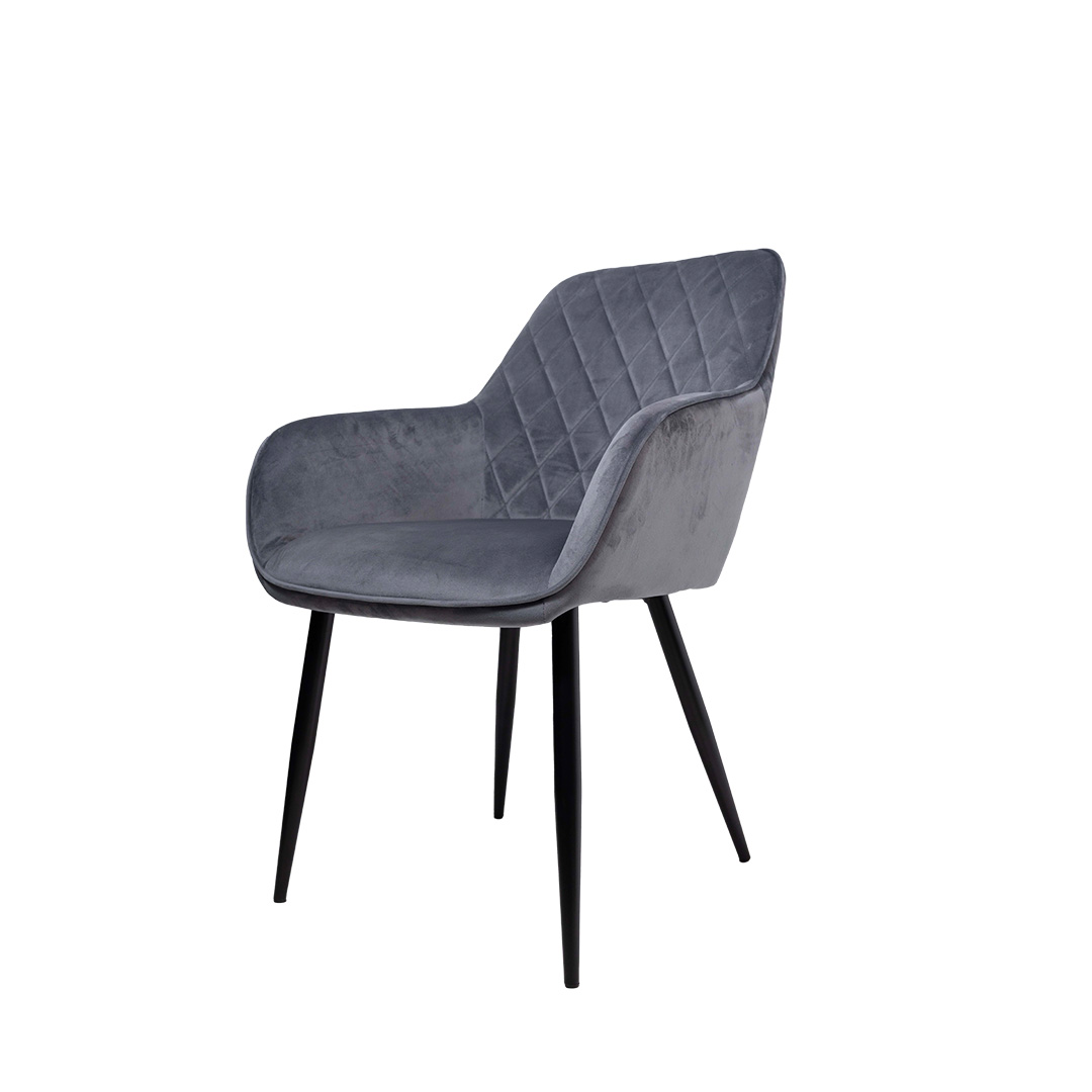 Features : velvet fabric seat and back double layer and comfortable seat, bottom cross metal leg, easy install Usage : Dining Chair Size: 450MM